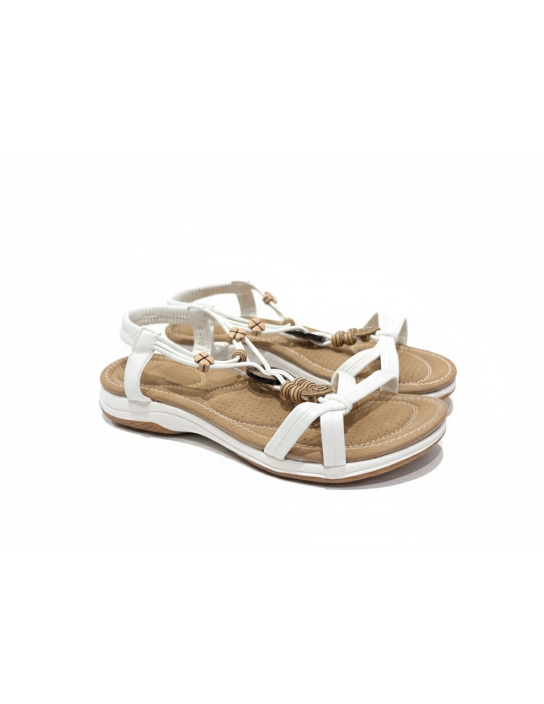Sandalias Planas con Adorno Decorativo y Tira Elástica Trasera Cómodas y a la Moda para Paseos y Vacaciones en la Playa
