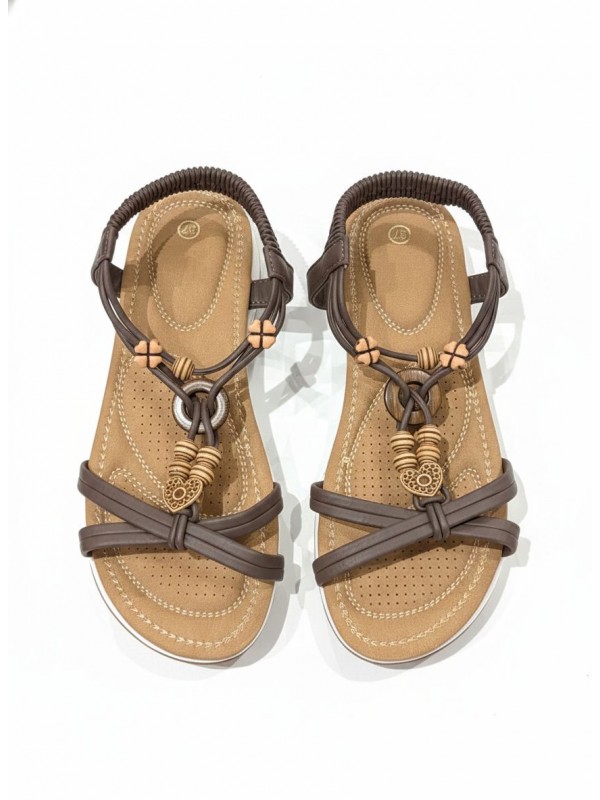 Sandalias Planas con Adorno Decorativo y Tira Elástica Trasera Cómodas y a la Moda para Paseos y Vacaciones en la Playa