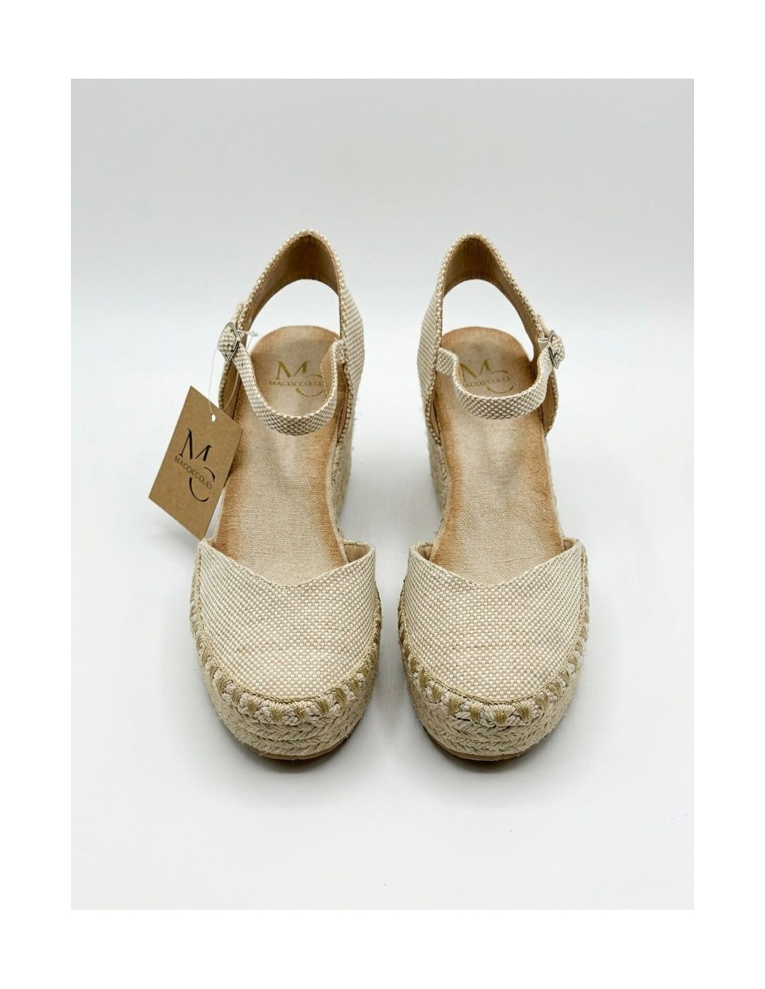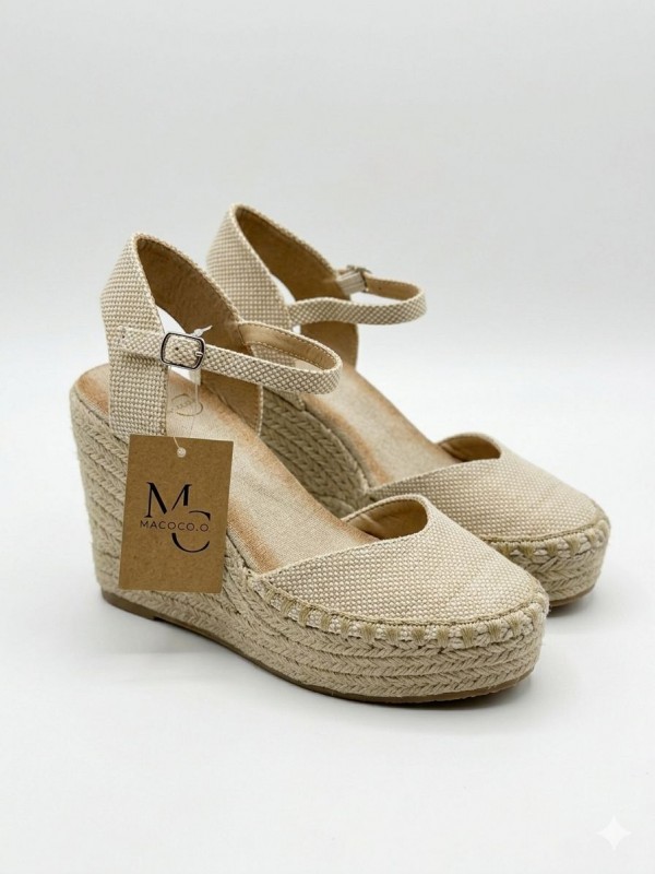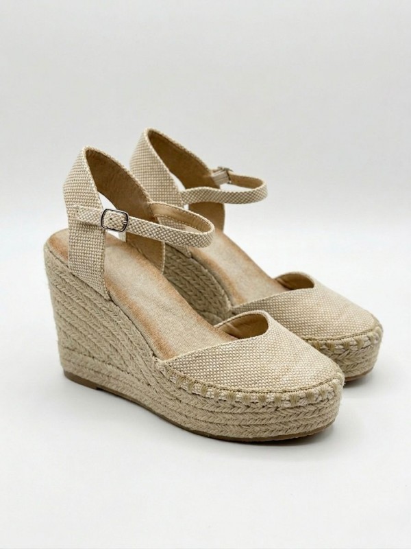Alpargatas de cuña con correa al tobillo suela de yute