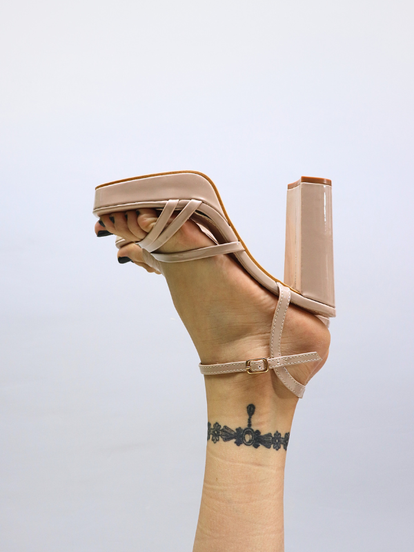 Sandalias de vestir tacón y plataforma efecto charol, colores nude y negro.